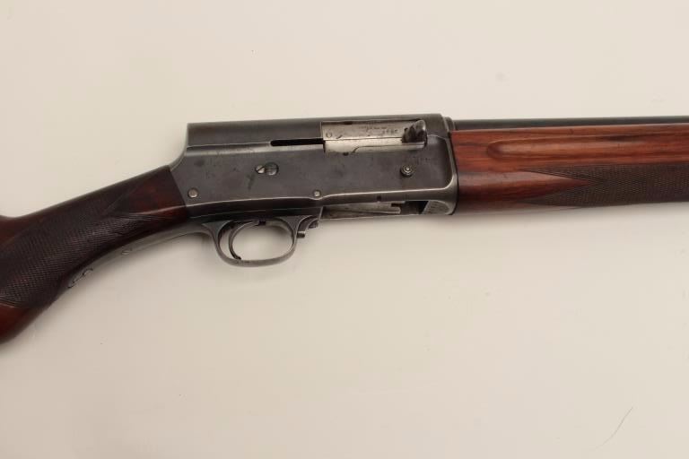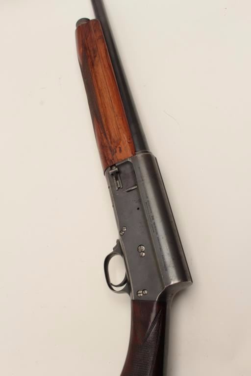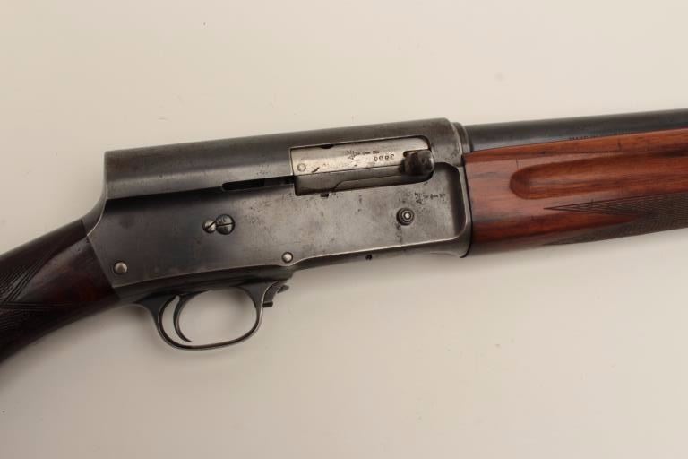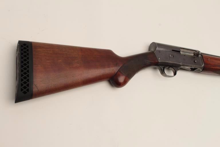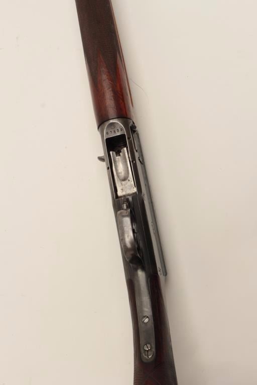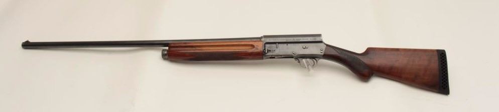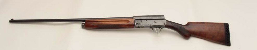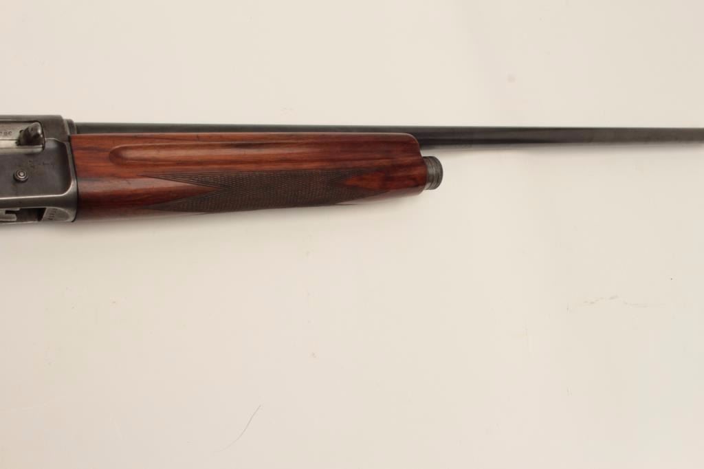 Belgian-made Browning semi-automatic shotgun, 29.5” barrel, blued finish, checkered wood stock with Browning hard rubber butt pad, S/N 63830, in overall good to very good condition displaying the majority of itsoriginal blued finish, very good to near fine bore, crisp action and markings, good wood with loss of finish to the rear portion of the butt stock. (C&R/PPT). Est.: $125-$250.