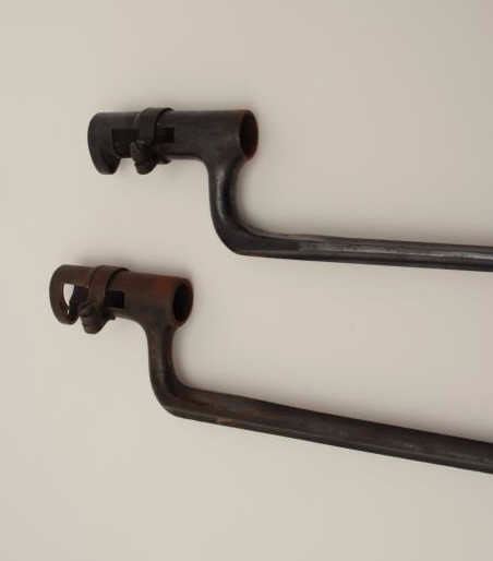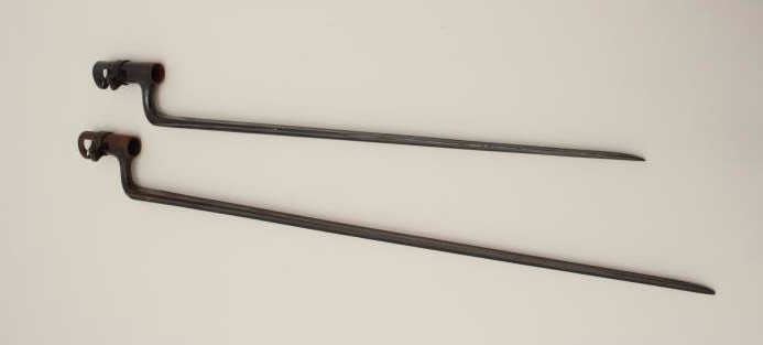 Lot 1244 Lot of 2 socket bayonets; one is U.S. marked, both un-cleaned. Est.: $100-$200.