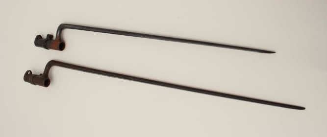 Lot of 2 socket bayonets; one is U.S. marked, both un-cleaned. Est.: $100-$200.