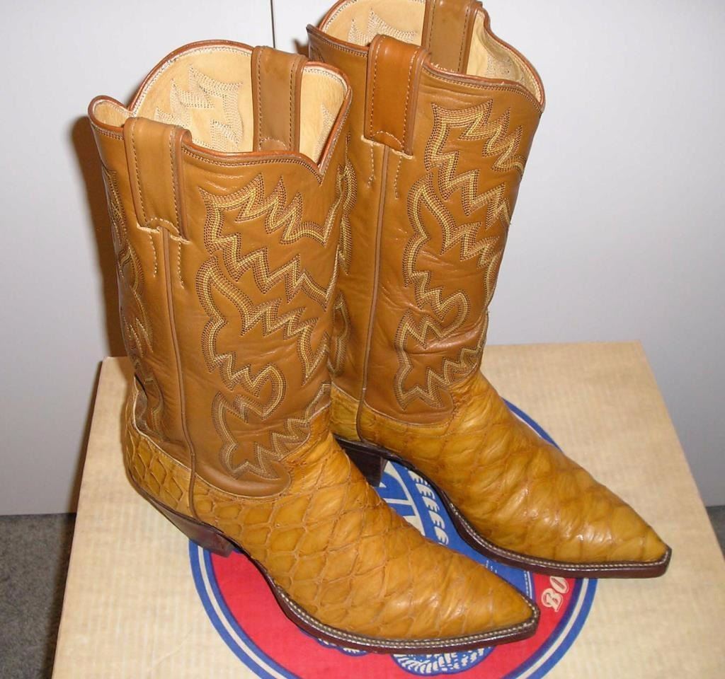 Lot 1251 Pair of Men's Exotic Cowboy Boots, tan anteater lower with a darker tan stitched upper. Justin siz