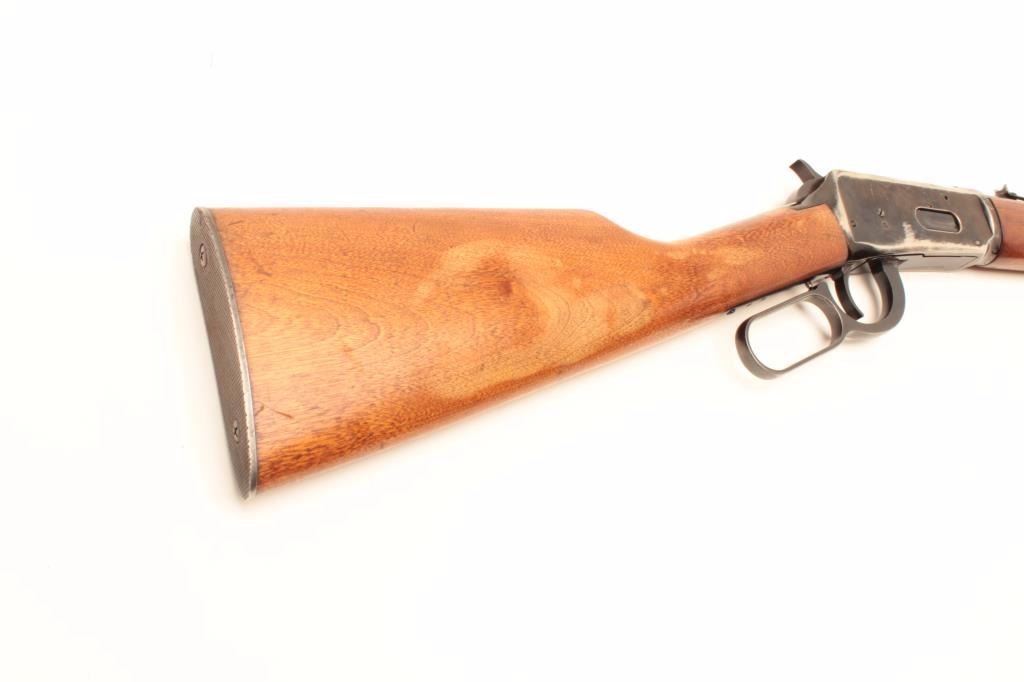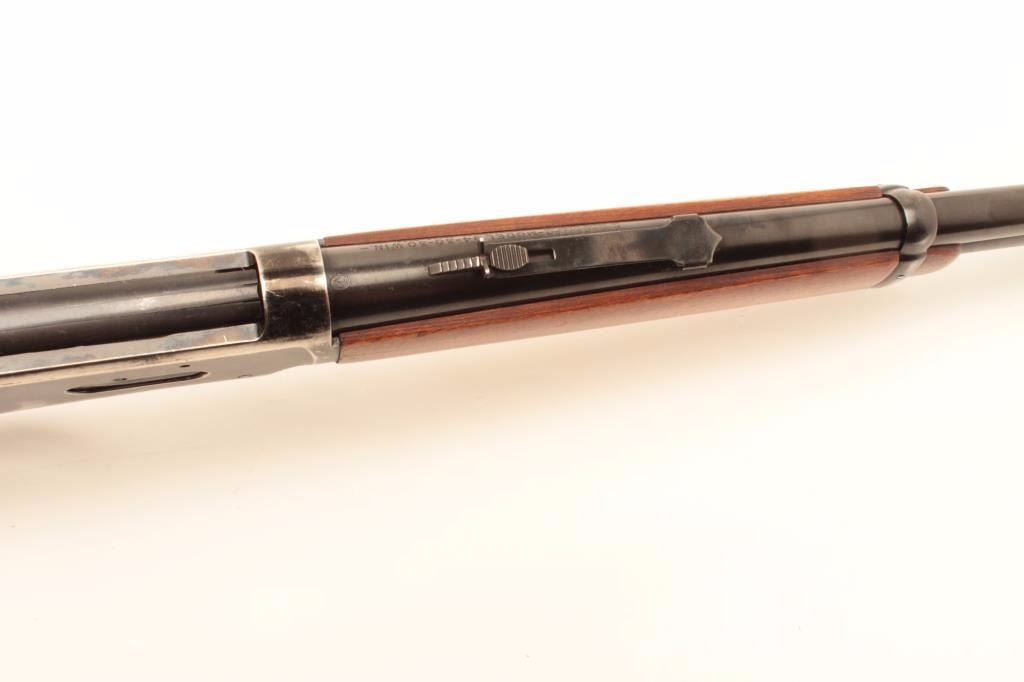 Winchester Model 94 lever action carbine, .30-30 Win. caliber, 20” barrel, black finish, wood stocks, S/N 3214771, in overall good to very good condition with majority of original finish on barrel assembly andconsiderable finish remaining on receiver showing areas of worn finish; very good bore, crisp action and markings, good wood with areas of wear on the butt stock and scattered mars and scratches from carry and storage. (Modern/PPT). Est.: $300-$600.