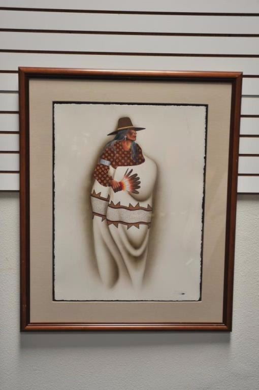 Lot 1276 Original framed color watercolor painting signed Robert Redbird (lower right), entitled “49 Singer