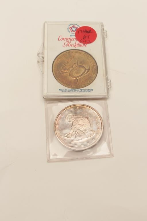 Lot 1288 Lot of commemoratives. 1976 Nevada Centennial and 1oz silver miner. Unc. Old collector’s horde. Es