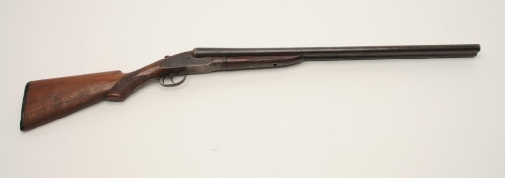 American Gun Co. SxS hammerless shotgun, 12 gauge, 27” barrels, dark patina to metal surfaces, checkered wood stocks, S/N 62702, in overall fair to good condition with good actions, visible markings, fair to good bores and weathered but complete butt stock. (C&R). Est.: $100-$300.