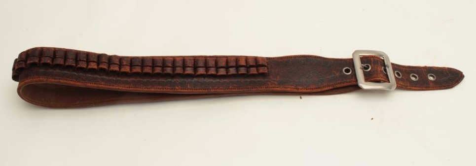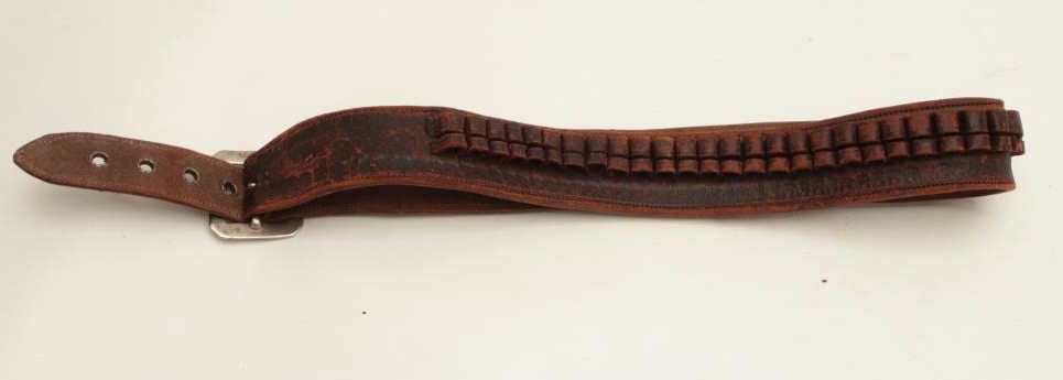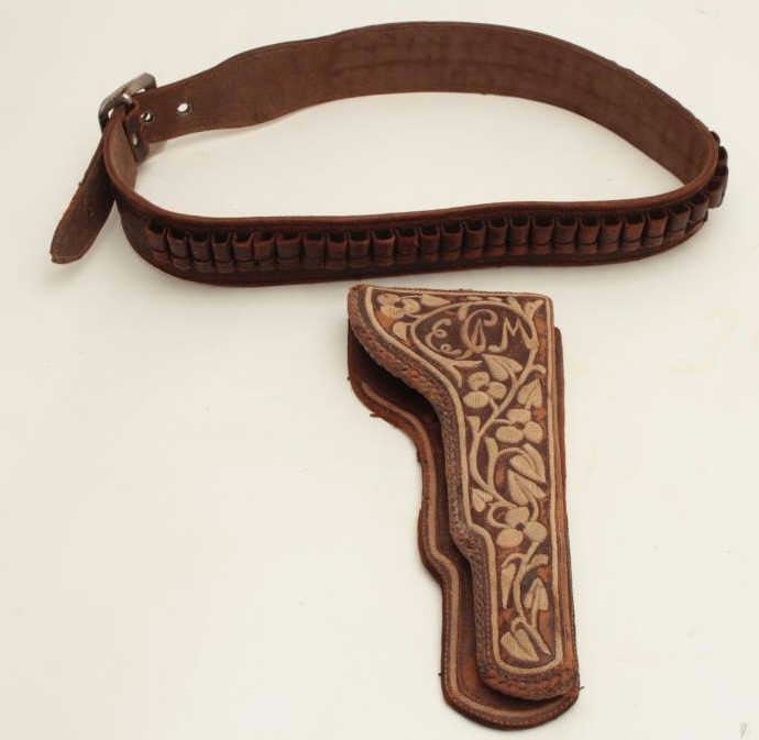 Lot 1307 Mexican pitiado decorated leather holster and leather cartridge belt, ca. early 1900’s, with initi