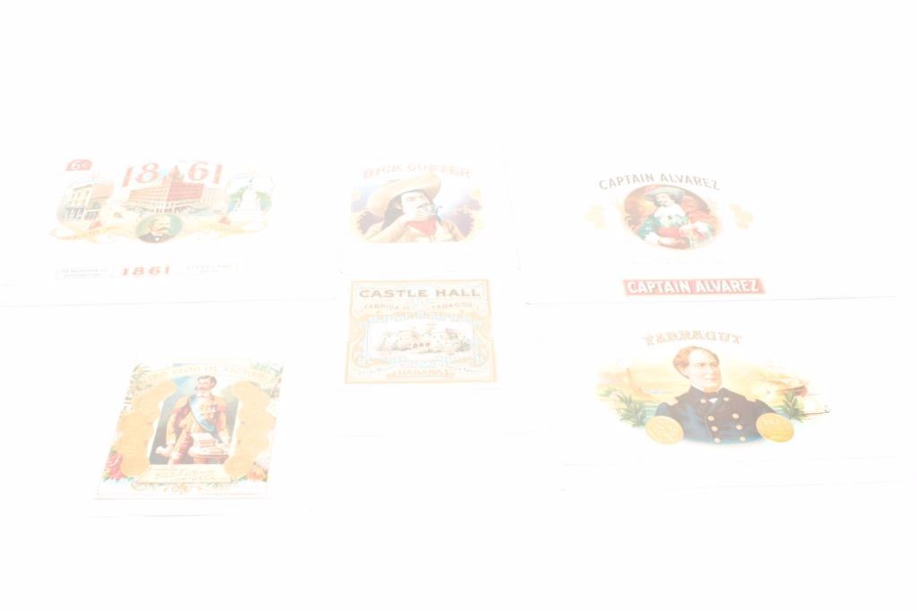 Lot of 6 excellent cigar box labels including Dick Custer (Wild West Style). Est.: $100-$200
