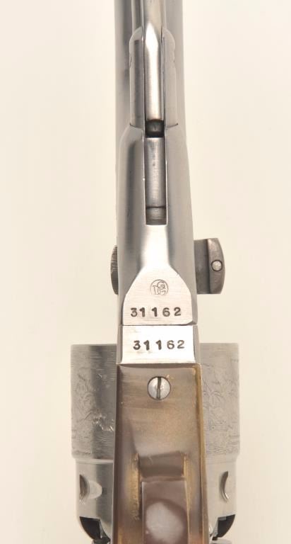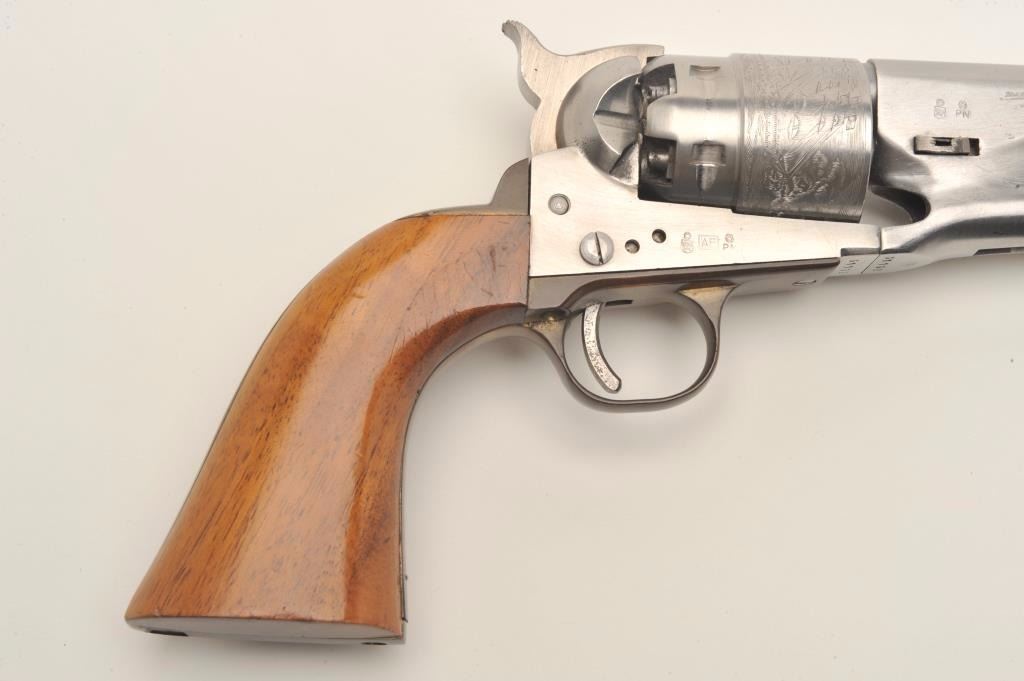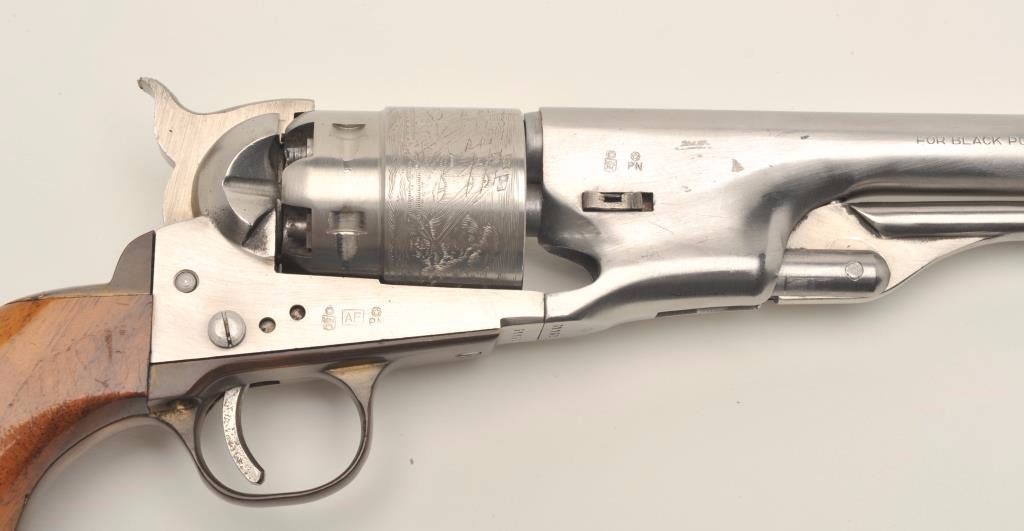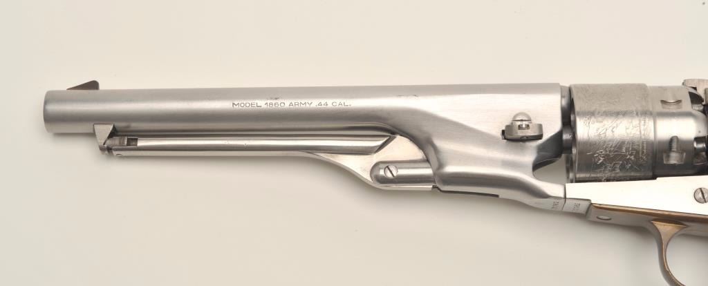 Italian modern copy of a percussion Model 1860 Army revolver for Euroarms of America, .44 caliber, stainless steel, wood grips, S/N 31162, in overall very good to fine condition. (percussion). Est.:$100-$200.