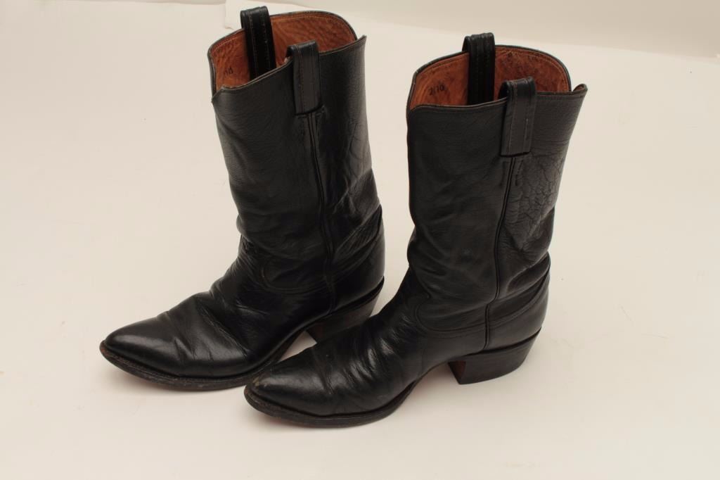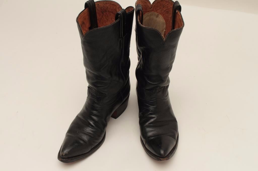 Pair of Tony Llama black buffalo boots, size 8; good to very good condition. From the estate of Elmer E. Taylor. Est.: $50-$100.