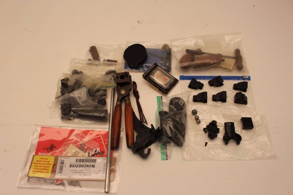 Lot 1349 Box lot of misc. shooters items and sight. Est.: $60-$120