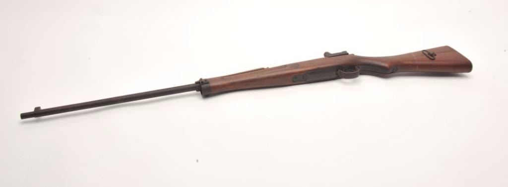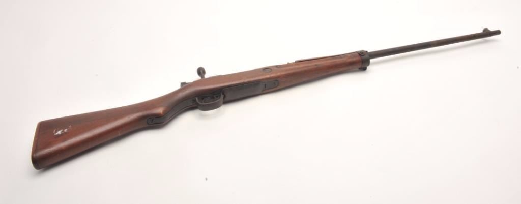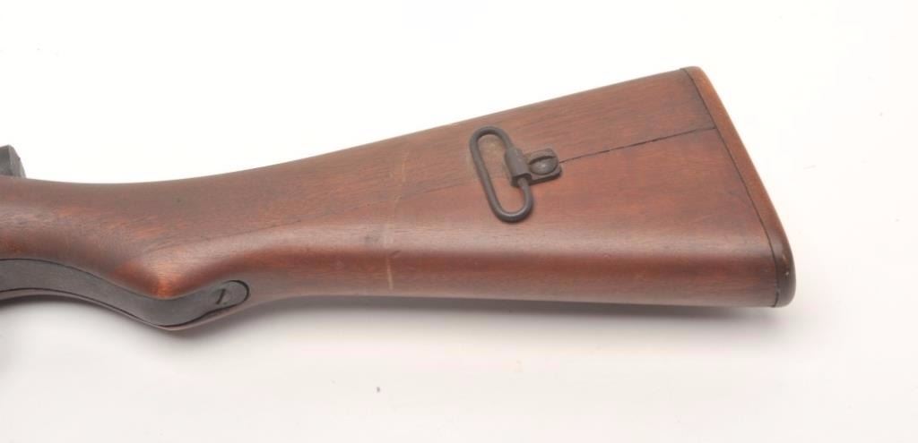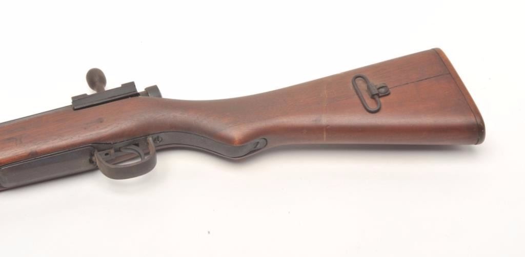 Sporterized Arisaka Model 99 bolt action rifle, 7.7mm caliber, 26” barrel, blued finish, modified wood stock with “last ditch” wood butt plate, S/N 66275, ground mum, overall fair to good condition assporterized. (C&R/PPT). Est.: $75-$150.
