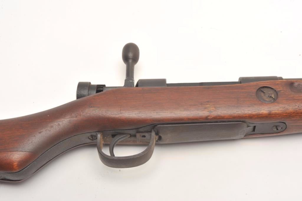 Lot 1356 Sporterized Arisaka Model 99 bolt action rifle, 7.7mm caliber, 26” barrel, blued finish, modified