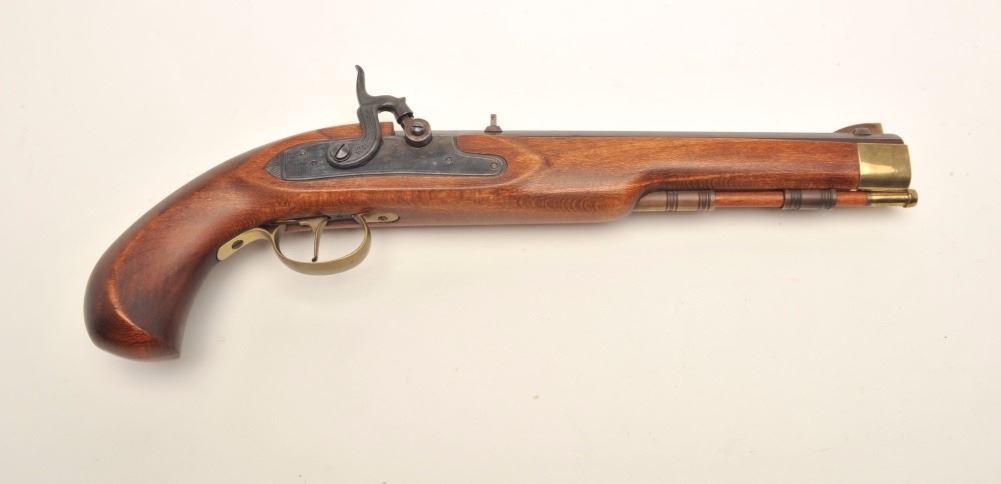 Lot 1366 Jukar percussion pistol, .45 caliber, serial #126475. The pistol is in very good overall condit