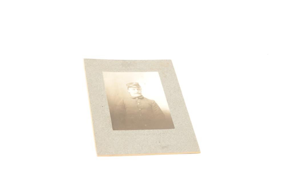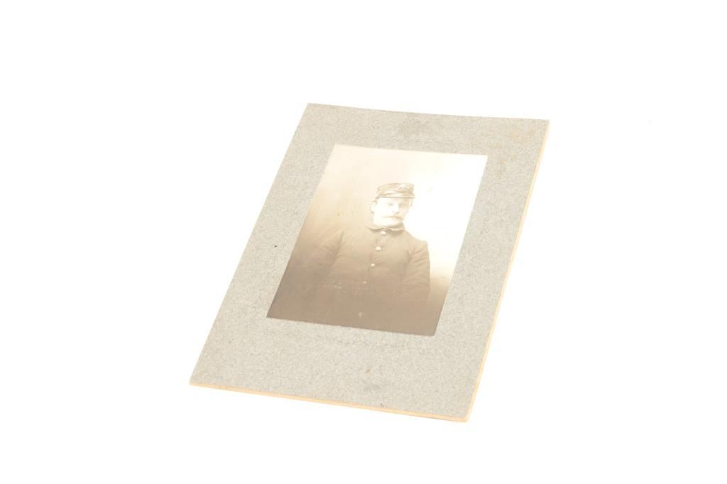 Lot 1372 Photo of Indian War soldier in uniform with infantry kepi on head. Measures 3 7/8” x 2 5/8”. In go