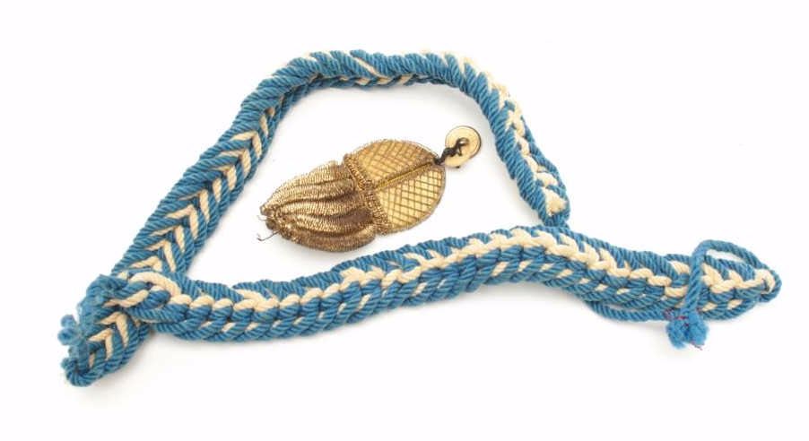 Blue and white braided cord with gold bullion tassel, for U.S. naval cocked hat and aggulette for Officer, possibly British. Est.: $25-$50.