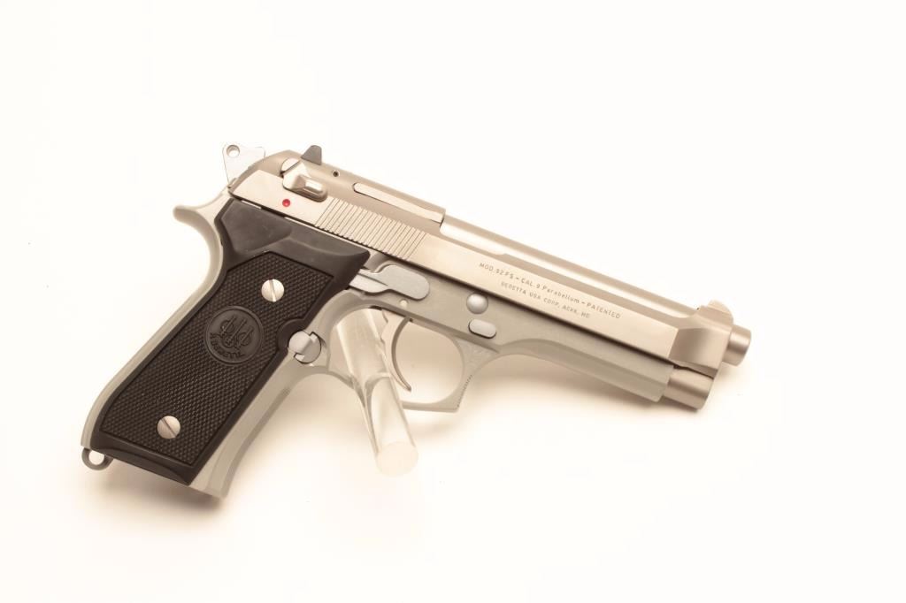 Lot 1427 Beretta Model 92FS semi-automatic pistol, 9mm caliber, 4.5” barrel, stainless, checkered black gri