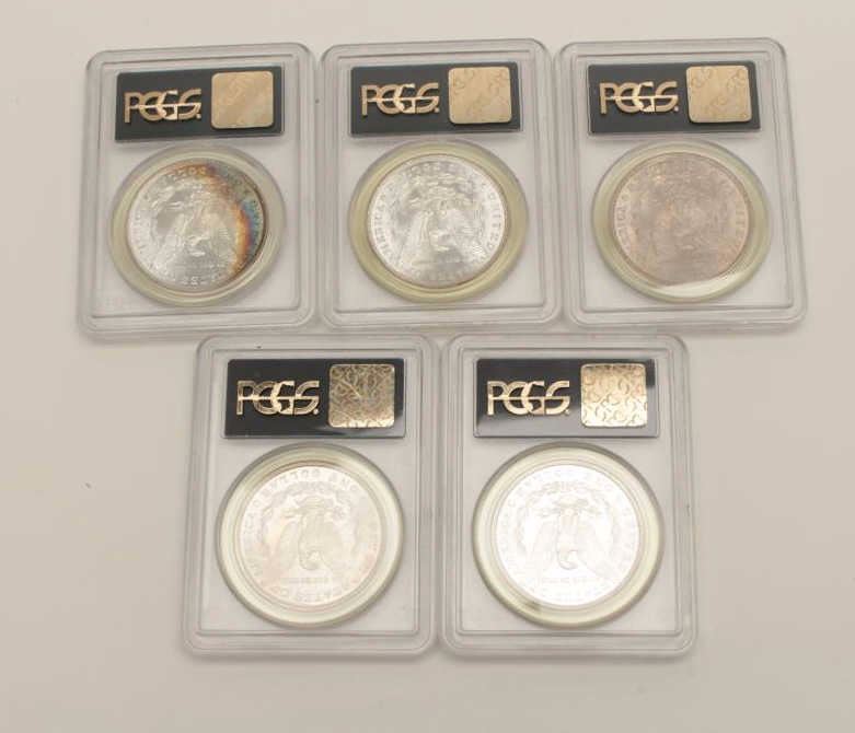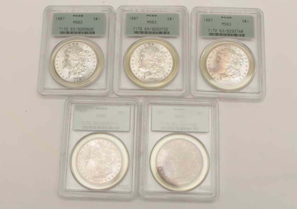 Lot 1433 PCGS Graded MS-63 U.S. Dollars 5 total. Dated 1887 Est:$275-550