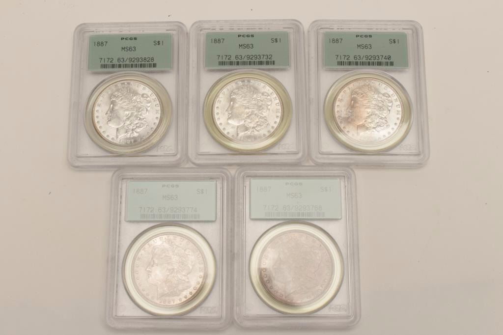 PCGS Graded MS-63 U.S. Dollars 5 total. Dated 1887 Est:$275-550