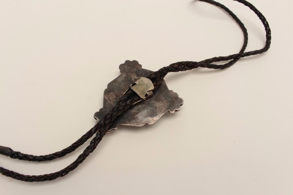 Lot 1436 Bolo Tie in Sterling Silver mounted with large nugget of turquoise. Pre 1979. Est$150-300