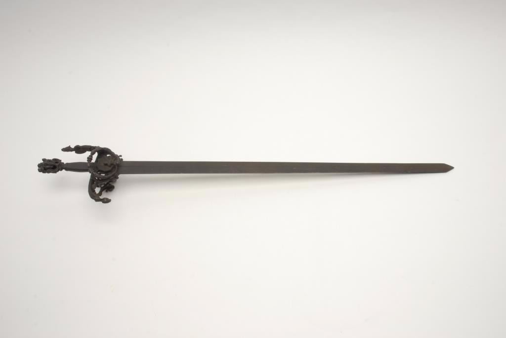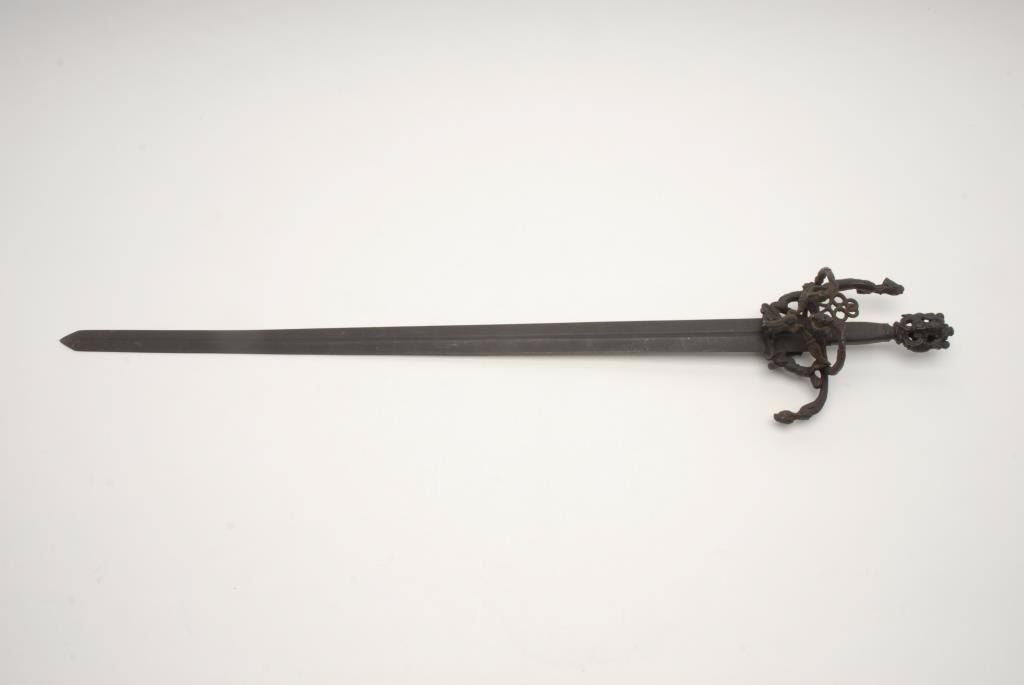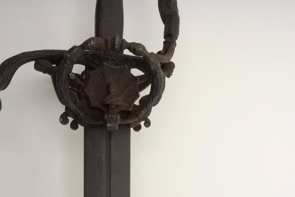 Lot 1447 Ornate broadsword from Victorian era with fancy cast metal mounts and great patina. During the 19t