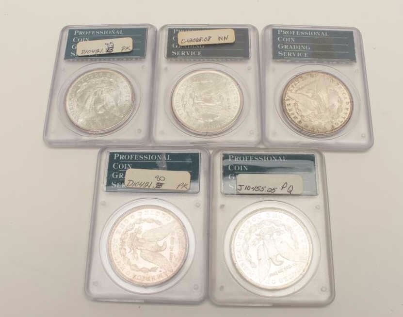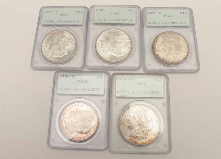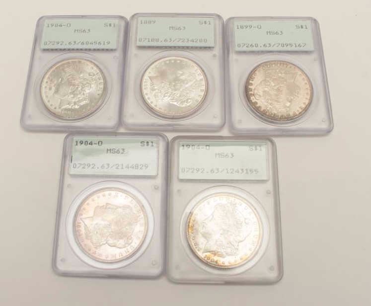 Lot 1455 PCGS MS-63 1904-0 (3), 1889, 1899-0, 5 TOTAL. EST:$275-550