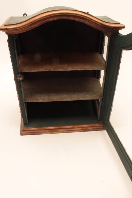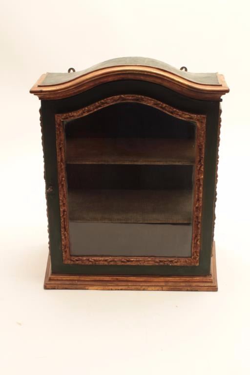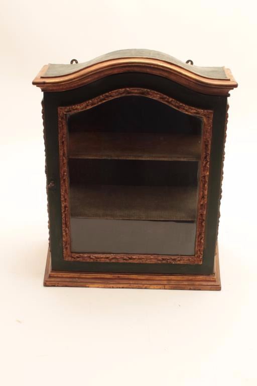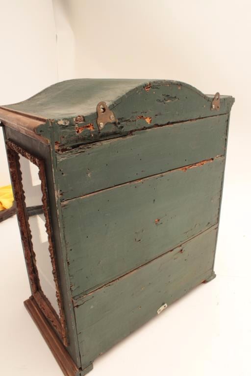 Lot 1457 Country French style Antique Display Cabinet, locks, 2 shelves. Approx. 19" ht 10" width. Good con