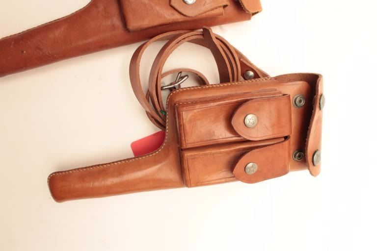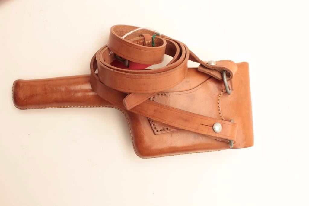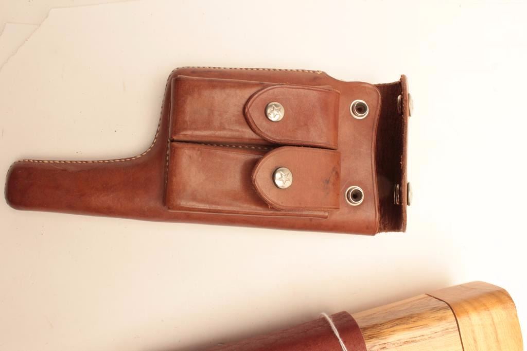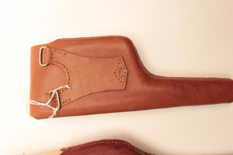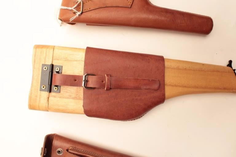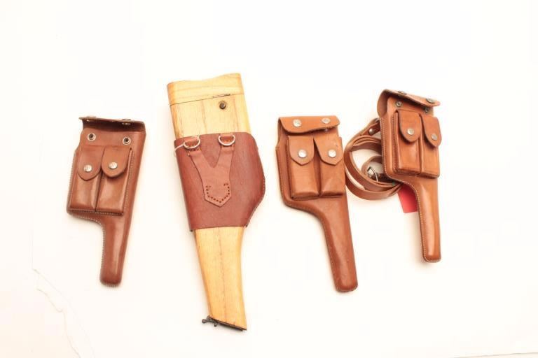 Mauser Broomhandle accessory lot including 3 Chinese holsters, all very good + and a reproduction stock. Est.: $150-$300.