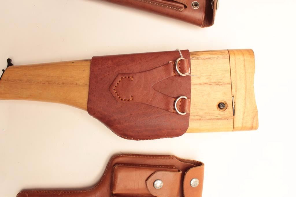 Lot 1459 Mauser Broomhandle accessory lot including 3 Chinese holsters, all very good + and a reproduction