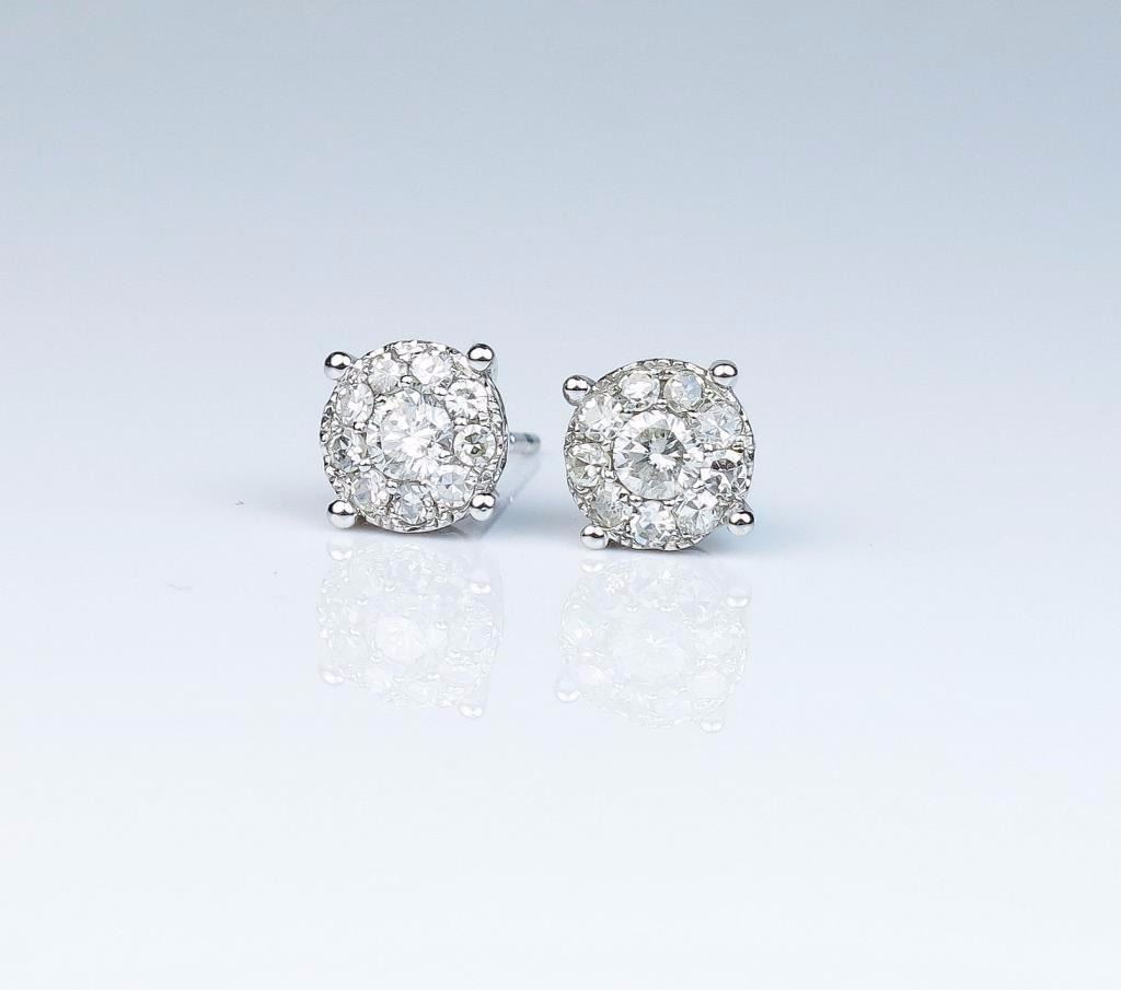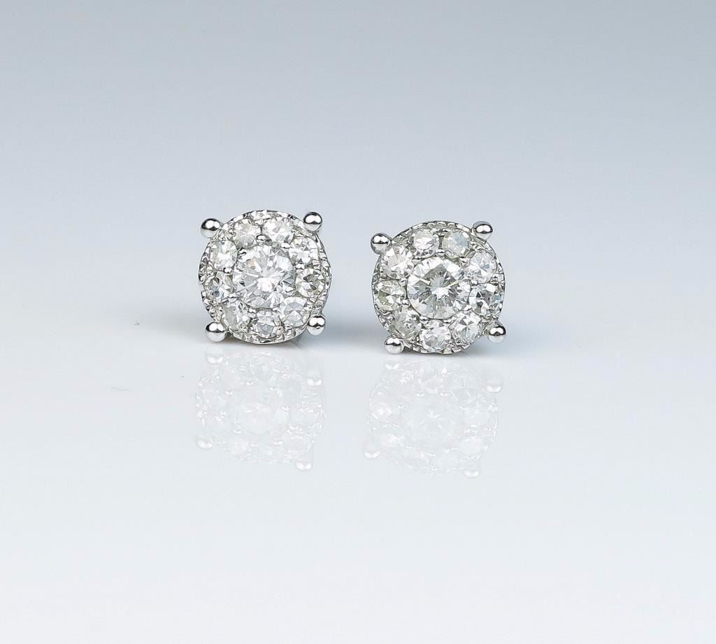 Lot 1496 Striking ladies diamond earrings set with twenty round diamonds weighing approx. 1.50 carats of G/
