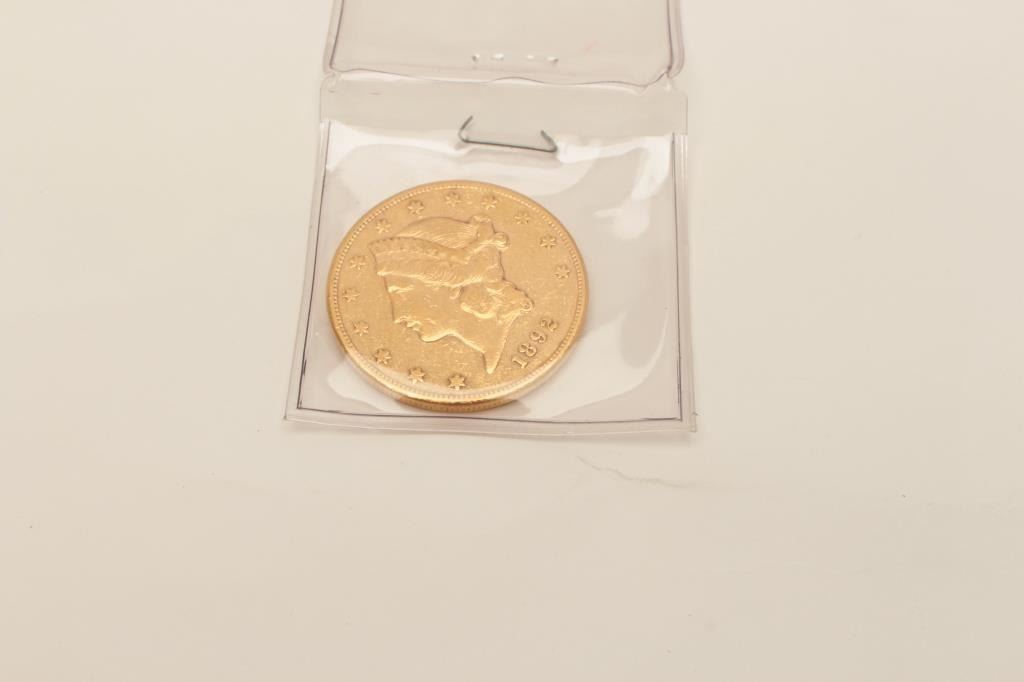 Lot 1517 1892 $20 U.S. gold Carson City mint. Not professionally graded. V.F. Old collector’s horde. Est.: