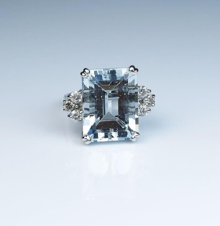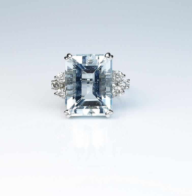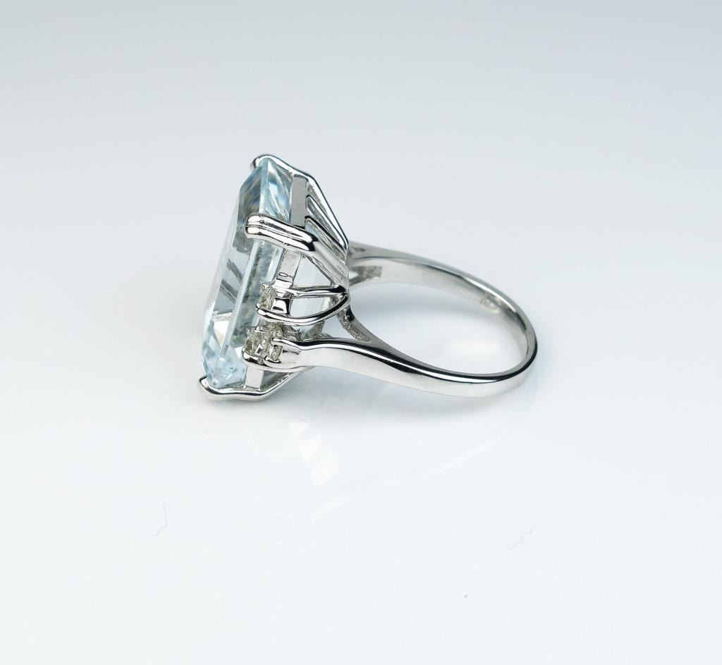 Lot 1570 Estate ladies ring featuring a large Aquamarine weighing approx. 20.00 carats and six round diamon