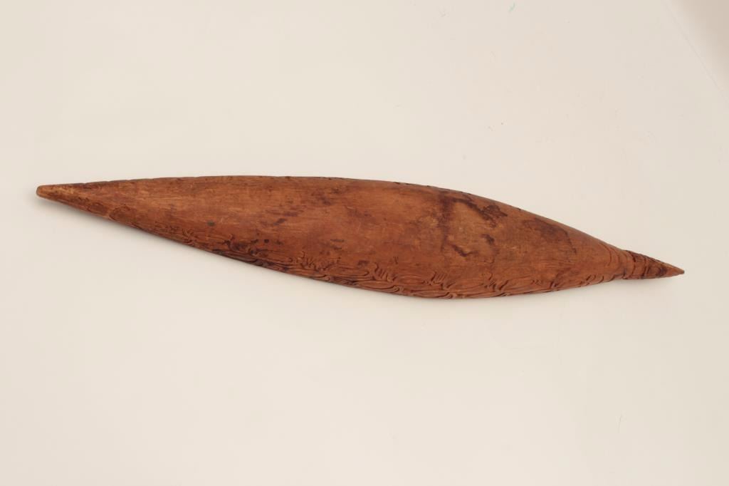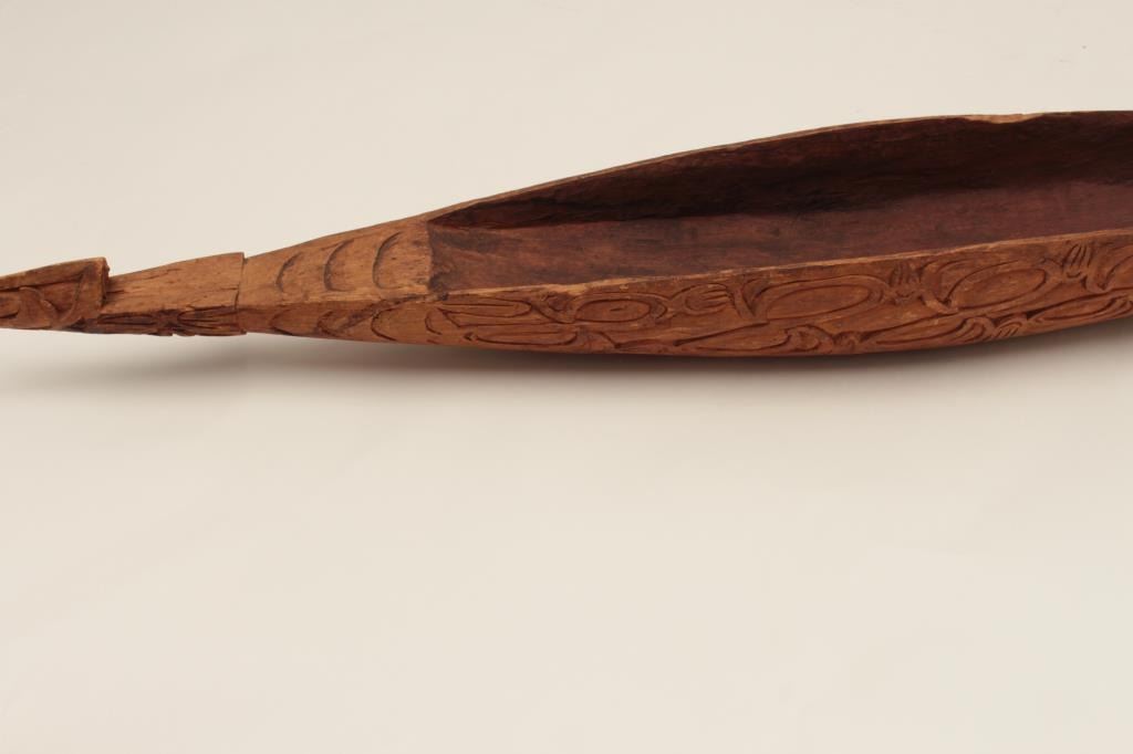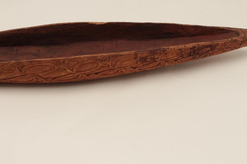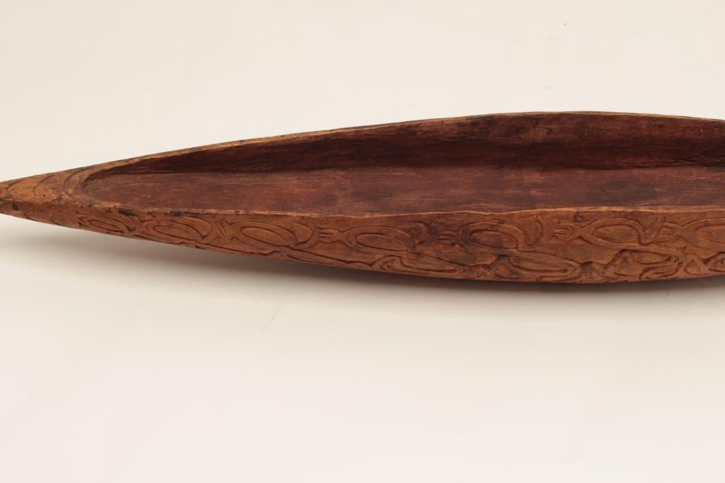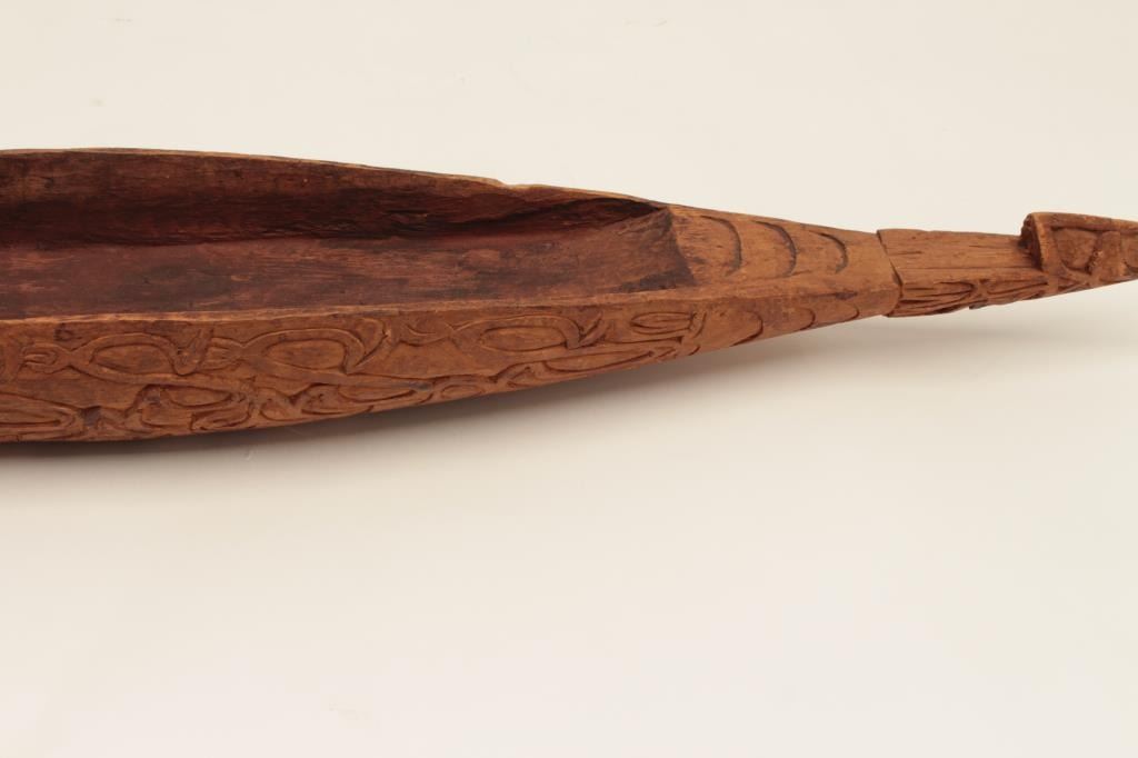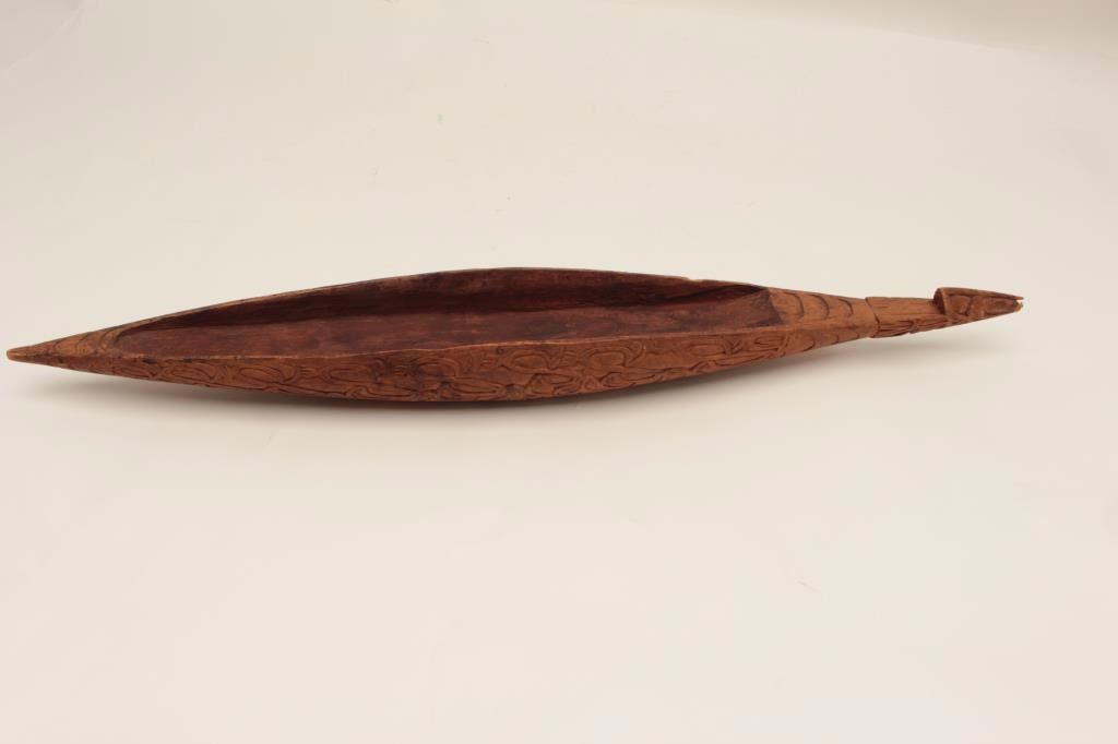 Old hand carved wood canoe in ethnic style; possibly New Guinea; 75 years old or older. Est.: $150-$300.