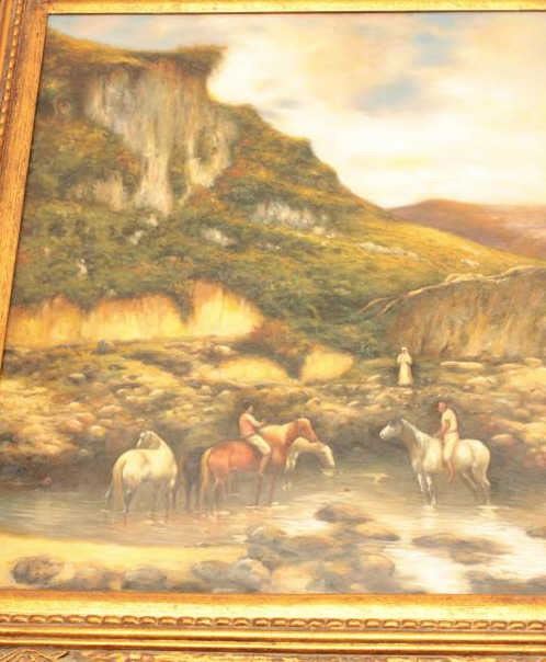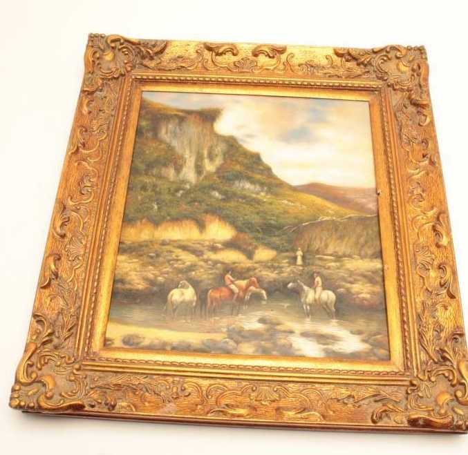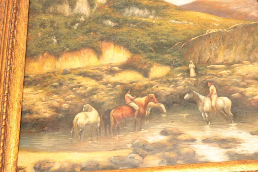 Unsigned oil on board in classic Santa Fe style. Good quality. Similar to Curtis Delano. Est.: $500-$1000