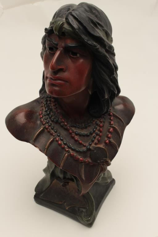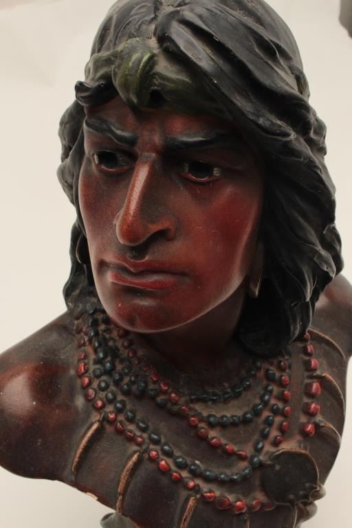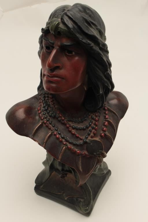 Lot 1616 Terra Cotta (Painted plaster) Victorian era bust of Pocahontas. Back bars and saloons along with h