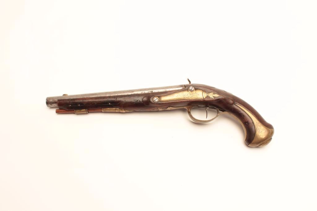 Lot 1621 Early 19th century flintlock pistol converted to percussion possibly German. Measures 15 ½” overal