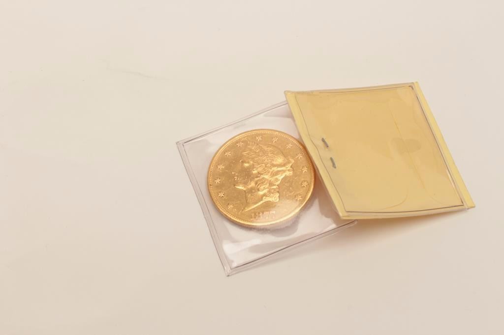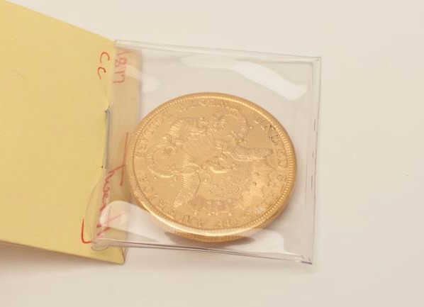 1877 $20 U.S. gold Carson City mint. Not professionally graded. Cleaned slightly. XF. Old collector’s horde. $1300-$2600