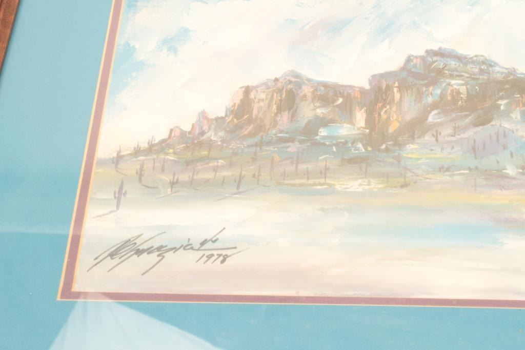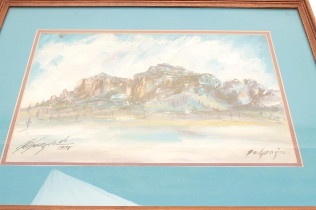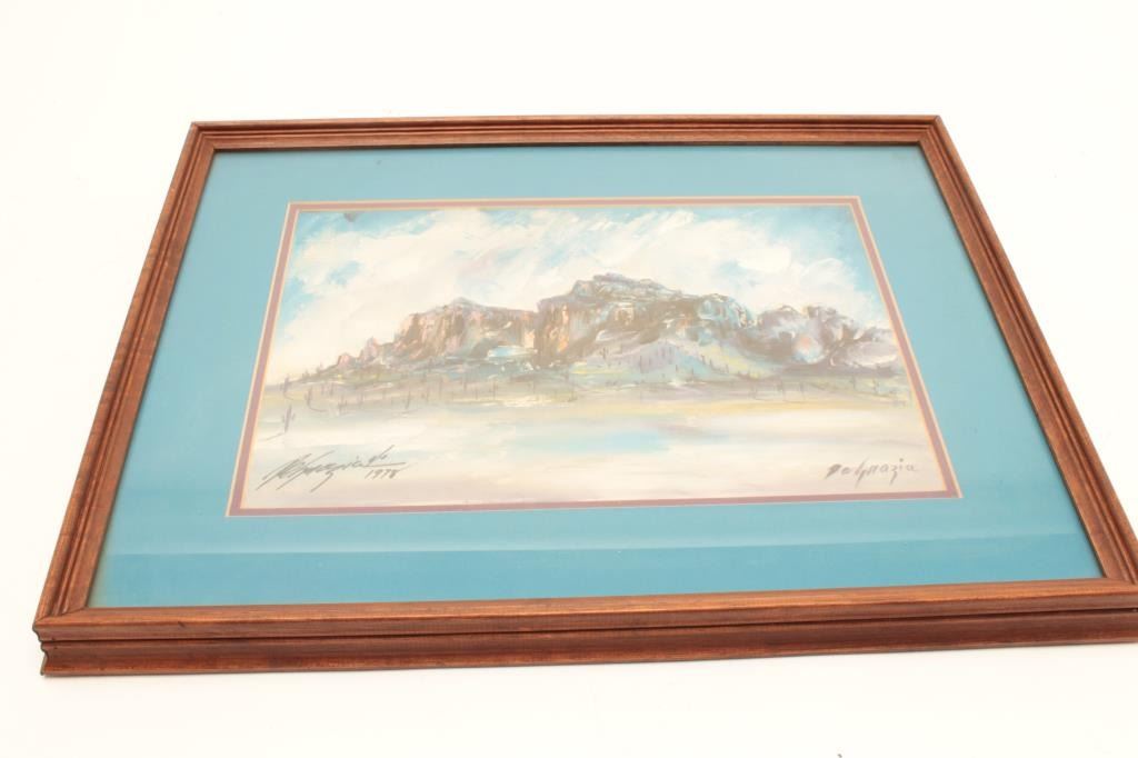 Old DeGrazia print, hand signed of Superstition Mountains, AZ.; approximately 16.25” x 21.25”. From the estate of Elmer E. Taylor. Est.: $150-$300.
