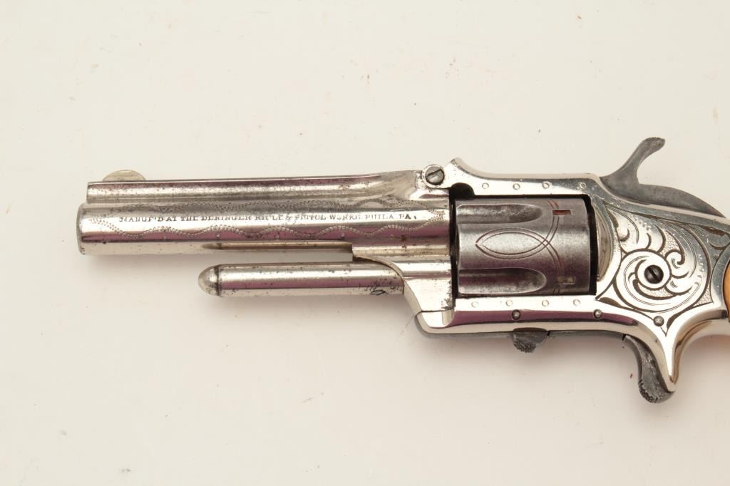 Lot 1656 Derringer Rifle & Pistol Works spur trigger revolver, .32RF caliber, 3.5” barrel, period engraved,