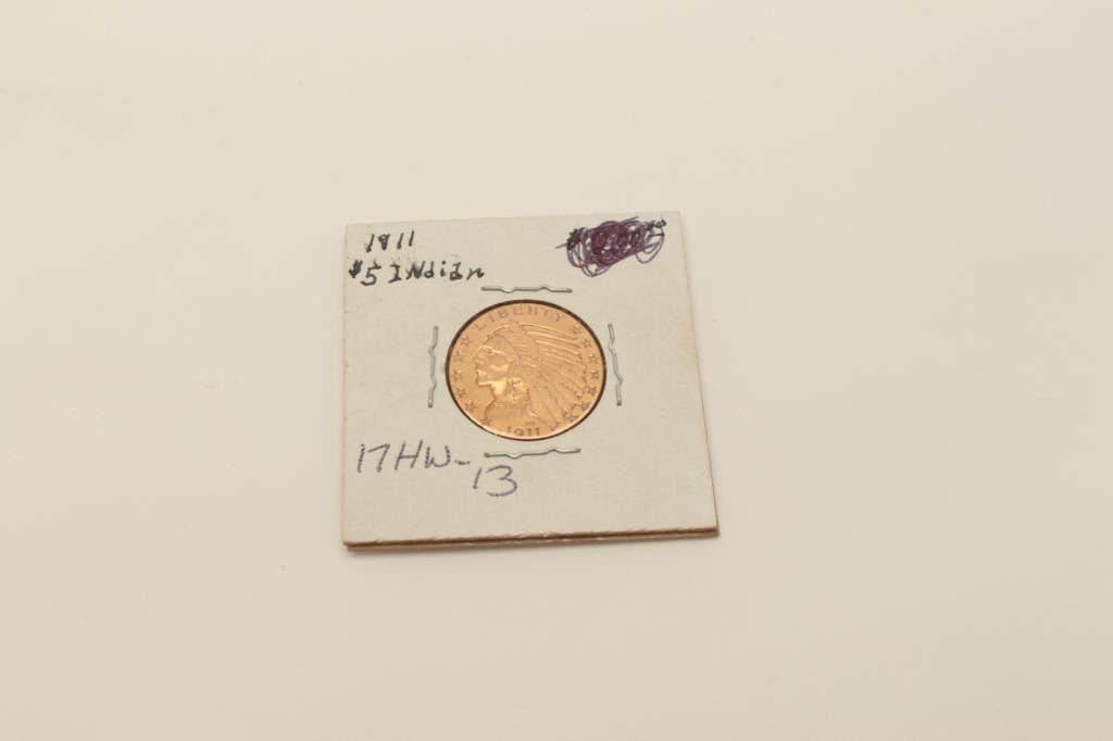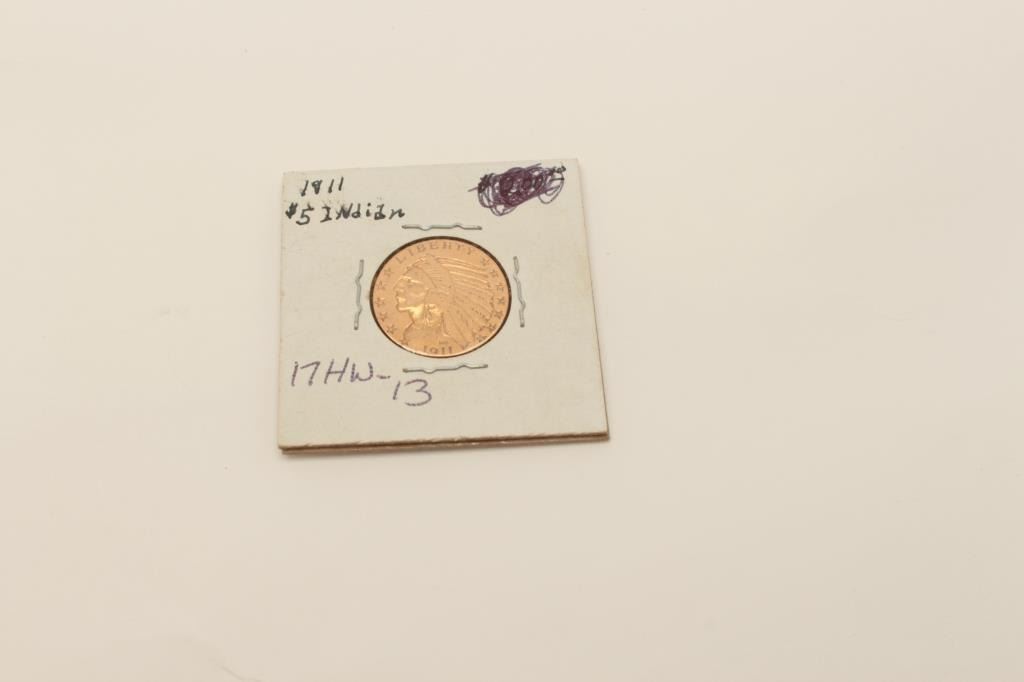 $5 U.S. gold dated 1911 V.I. not professionally graded. Old collecotr’s horde. Est.: $275-$550