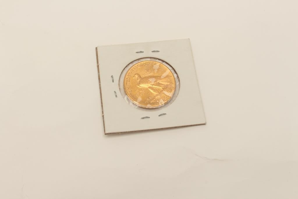 $10 U.S. gold 1915 dated and not professionally graded XF plus. Old collector’s horde. $600-$1200
