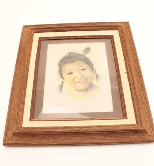 Lot 1733 Watercolor of Indian Girl signed L.L. Yazzi (1978) with tepee mark; approximately 17” x 15”. Fr