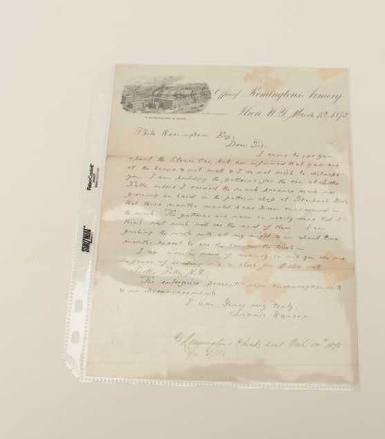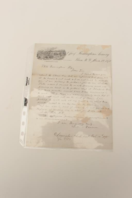 Lot 1763 March 5, 1875-dated letter on Remington Armory stationary from Loomis Ransom to Philo Remington co