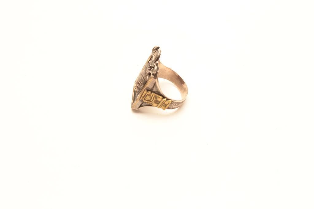 Lot 1906 Unsigned and unmarked two-tone men’s ring with an Indian chief in headdress portrayed on front. T