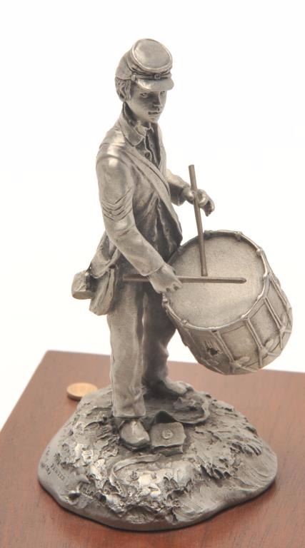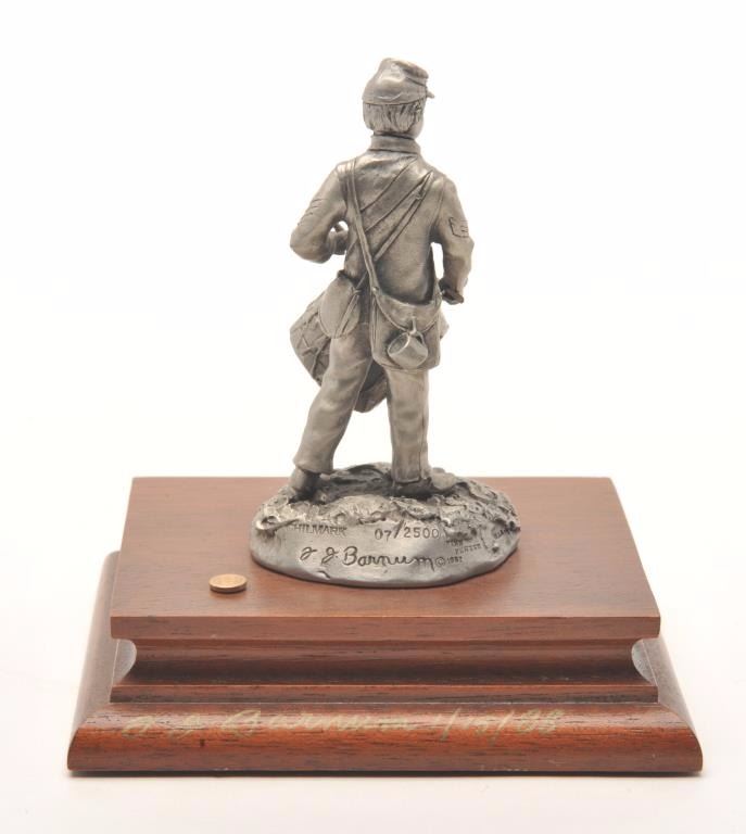 Pewter sculpture by Fran Barnum and issued by Chilmark Collectors Society entitled “Johnny Shiloh”, #007/2500, approximately 4.5” in height including wood base with Certificate of Registration, signed and dated Apr. 25,1988. Est.: $100-$200.