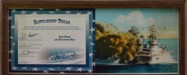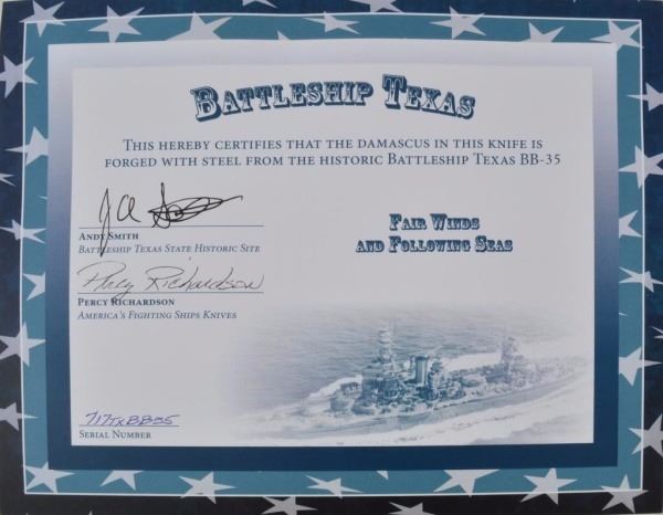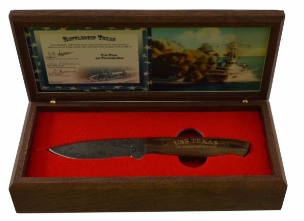 * Comes with commemorative Demascus Knife forged from the steel of the USS Texas.