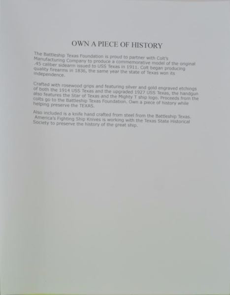 Lot 20 Battleship USS Texas Commemorative Colt 1911 .45
