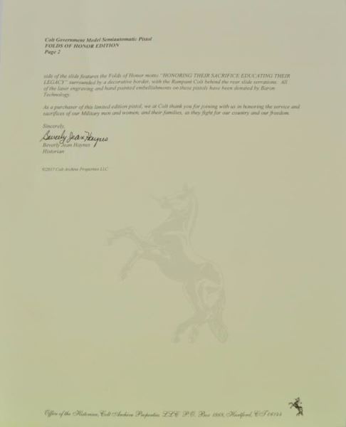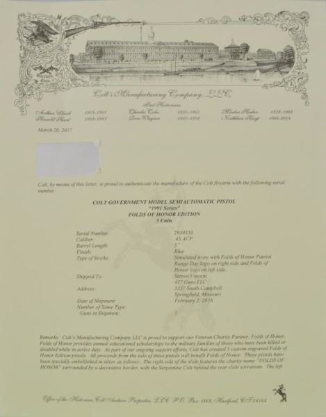 Lot 22 Colt Model 1911 "Folds Of Honor" .45 Pistol