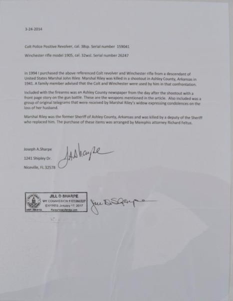 Lot 73 U.S. Marshal John Riley's Colt & Winchester 1905