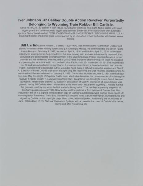 Lot 75 Train Robber Bill Carlisle Iver Johnson Revolver