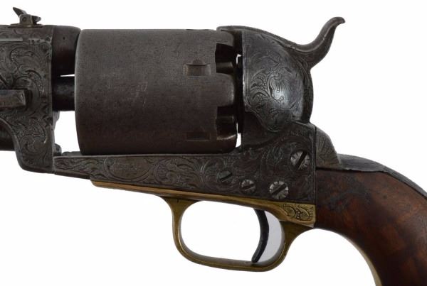 Factory Engraved by Gustave Young. Was a Sam Colt Presentation piece. Formally in the collection of Gary Burghoff, who starred as Radar in the series MASH. Complete with paperwork. Mfd 1858. Antique.