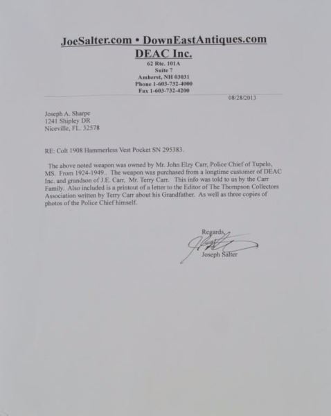 Lot 119 Police Chief John Carr's Colt 1908 Hammerless